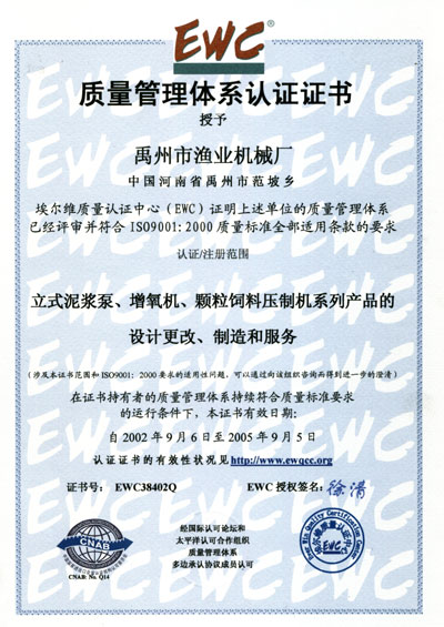 ----幾年來,我廠本著靠科技求發(fā)展,靠信息求市場,靠質(zhì)量求生存,靠管理求效益的治廠方略,大膽進(jìn)行改革,建立起一套全新的運(yùn)行機(jī)制。2002年9月已通過ISO9001:2000國際質(zhì)量管理體系認(rèn)證;在2000年12月榮獲河南省科學(xué)技術(shù)廳“科技企業(yè)證書“;2001年7月獲河南省科學(xué)技術(shù)廳“高新技術(shù)產(chǎn)品證書“;2001年12月獲河南省科學(xué)技術(shù)廳“高新技術(shù)企業(yè)認(rèn)定證書“;曾獲河南省鄉(xiāng)鎮(zhèn)企業(yè)名牌產(chǎn)品稱號。